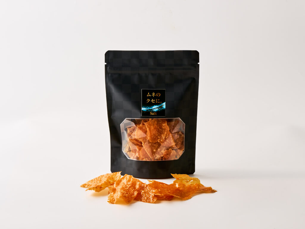 鶏胸肉を100%使用した、パリパリ食感のチップス「ムネのクセに。」